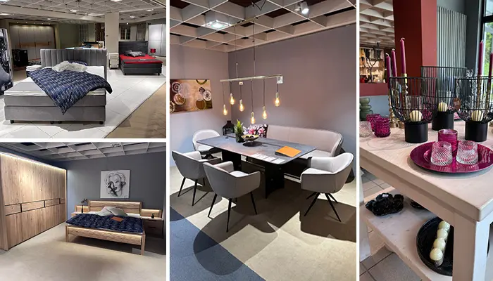 Mehr als 4000 qm Ausstellungsfläche mit Möbeln und Küchen von hoher Qualität helfen uns Ihre Wohnträume zu erfüllen. Unsere Boutique mit Wohn-Accessoires rundet das Angebot ab.